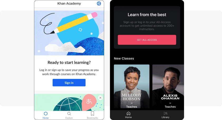Live examples: online education platforms Masterclass and Khan Academy: